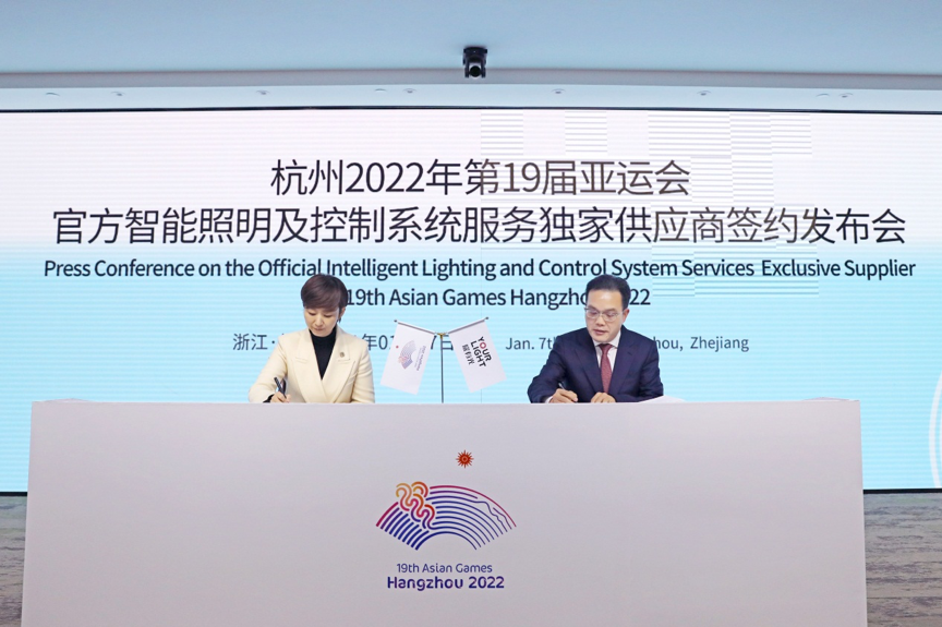 1月7日下午,杭州2022年第19届亚运会官方智能照明及控制系统服务独家供应商签约发布会在杭州举行,广州耀有光照明科技有限公司(下称“耀有光”)正式成为2022年杭州亚运会独家供应商。