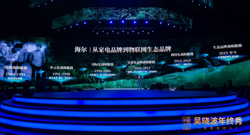 从创业之初到2019年,继名牌战略、多元化战略、国际化战略、全球化品牌战略、网络化战略这五个阶段后,步入物联网时代这一未知之境的海尔,又探索出了一套与物联网时代共振的发展战略,正式开启生态品牌战略阶段,从原来有围墙的花园演化为热带雨林式的、可以自进化的商业生态体系。