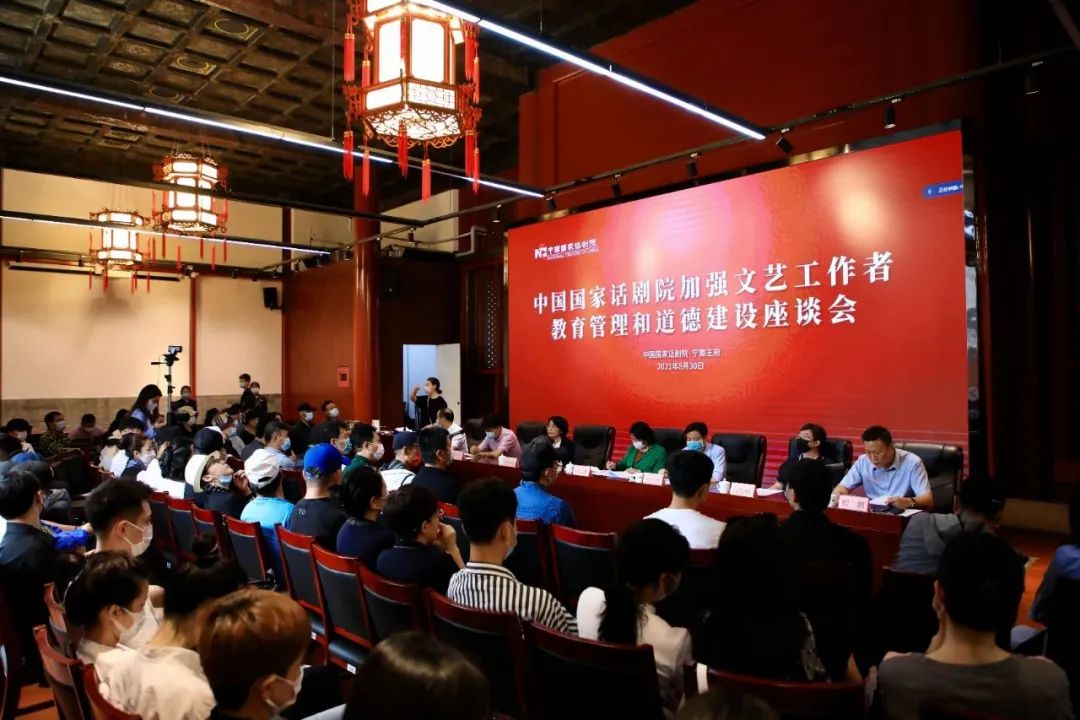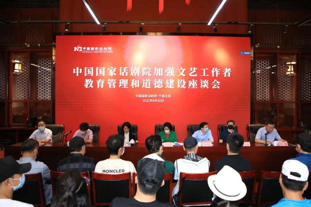 8月30日,文化和旅游部印发《关于进一步加强文艺工作者教育管理和道德建设的通知》,当日下午,中国国家话剧院召开“加强文艺工作者教育管理和道德建设座谈会”。针对当前文娱领域出现的违法违规、失德失范现象,为进一步加强文艺工作者教育管理和道德建设,树立文艺新风,培育和弘扬社会主义核心价值观,引导国家话剧院文艺工作者自觉践行社会主义核心价值观,发挥国家艺术院团的代表性、示范性和导向性作用。 文化和旅游部艺术司副司长黄小驹,中国国家话剧院党委书记诸葛燕喃,院长田沁鑫,艺术总监戈大立,副院长白雪峰,党委副书记、纪委书记闻国久,副院长程鹏,以及剧院109位演员参加会议,座谈会由党委书记诸葛燕喃主持。