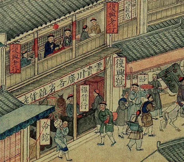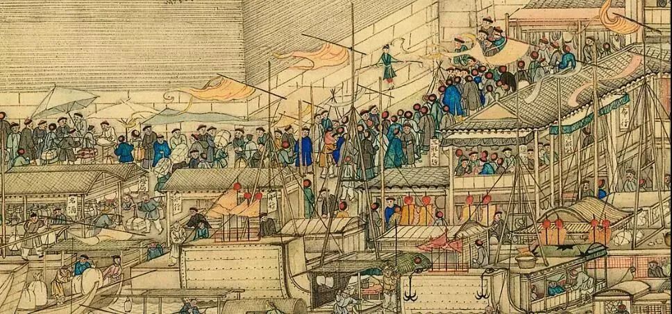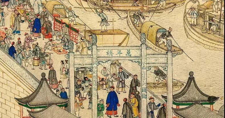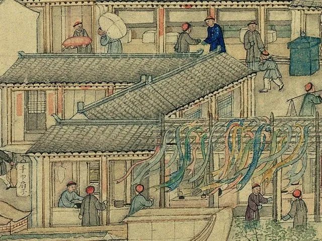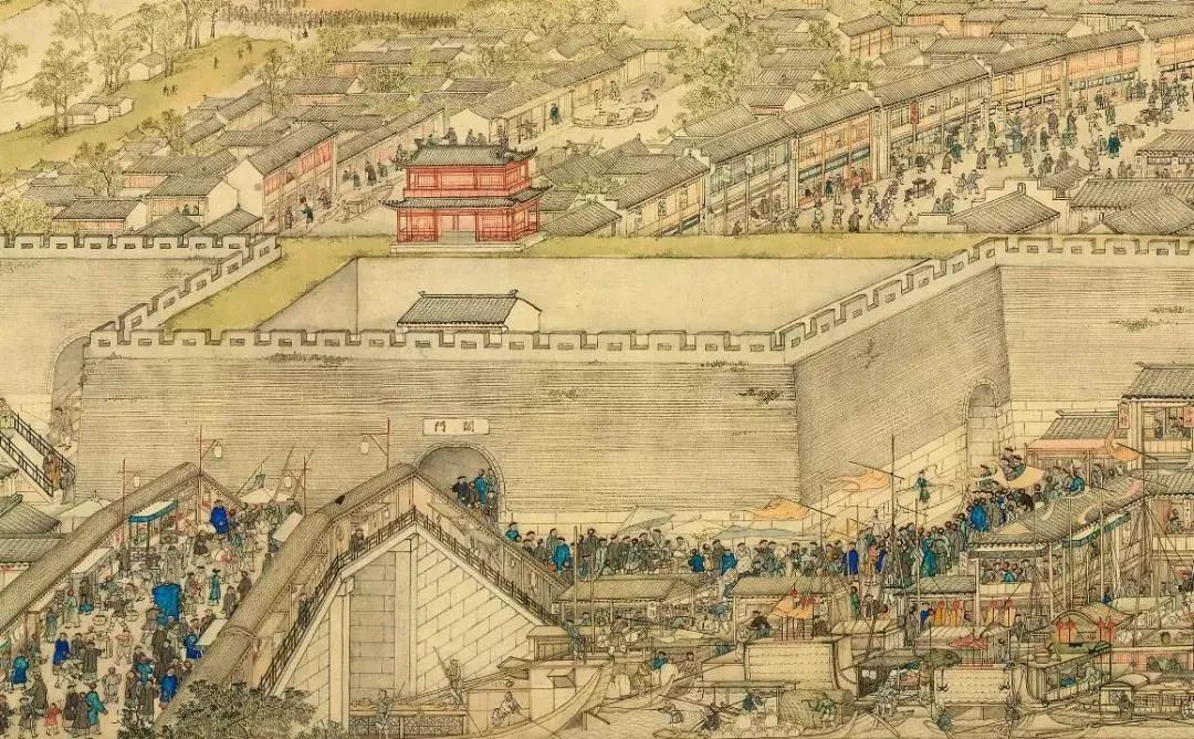 《姑苏繁华图》将阊门作为重点加以描绘,并将这部分景致安排于图卷接近尾声的高潮位置。在没有照相机的18世纪,《姑苏繁华图》非常可贵地为我们记录下了阊门商业繁茂的景象。