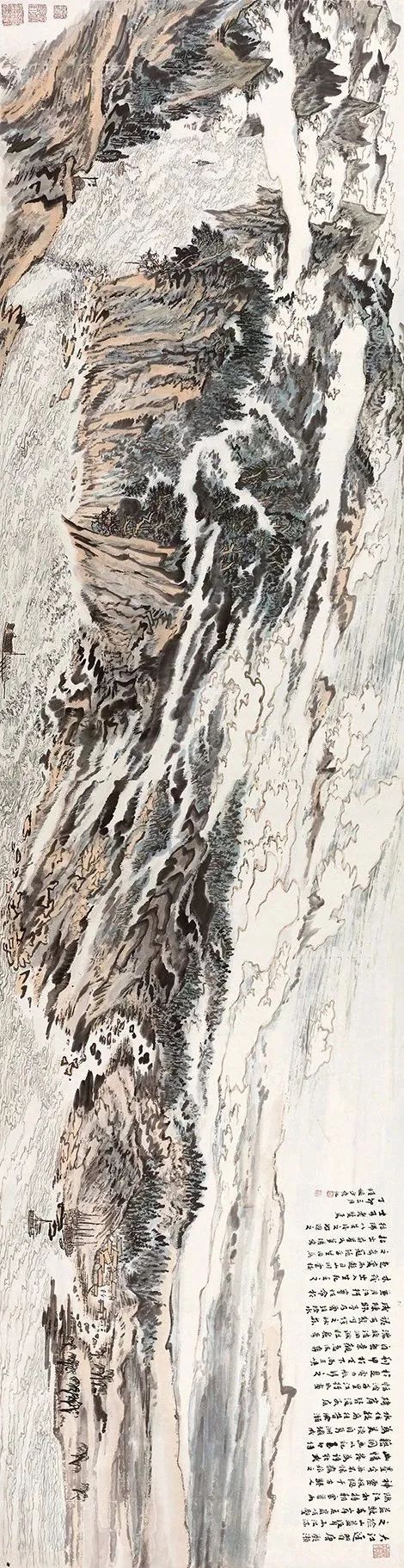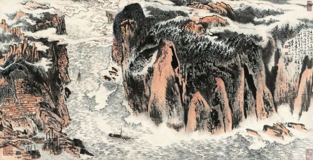 陆俨少《三峡图》 纸本设色 91.5×354.5cm 1987年 陆俨少艺术院藏(横屏赏析)