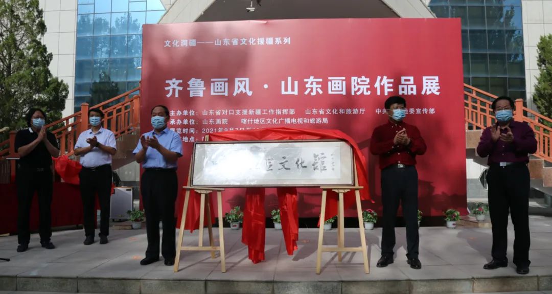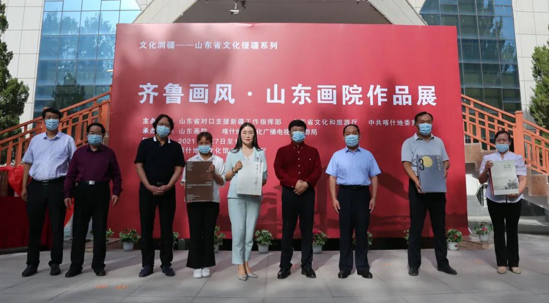 为贯彻落实新时代党的治疆方略,以文化艺术交流活动为载体,深入推进“文化润疆”工程,由山东省对口支援新疆工作指挥部、山东省文化和旅游厅、中共喀什地委宣传部主办,山东画院、喀什地区文化广播电视和旅游局承办的“齐鲁画风·山东画院作品展”,于9月7日在喀什地区文化馆隆重开幕。