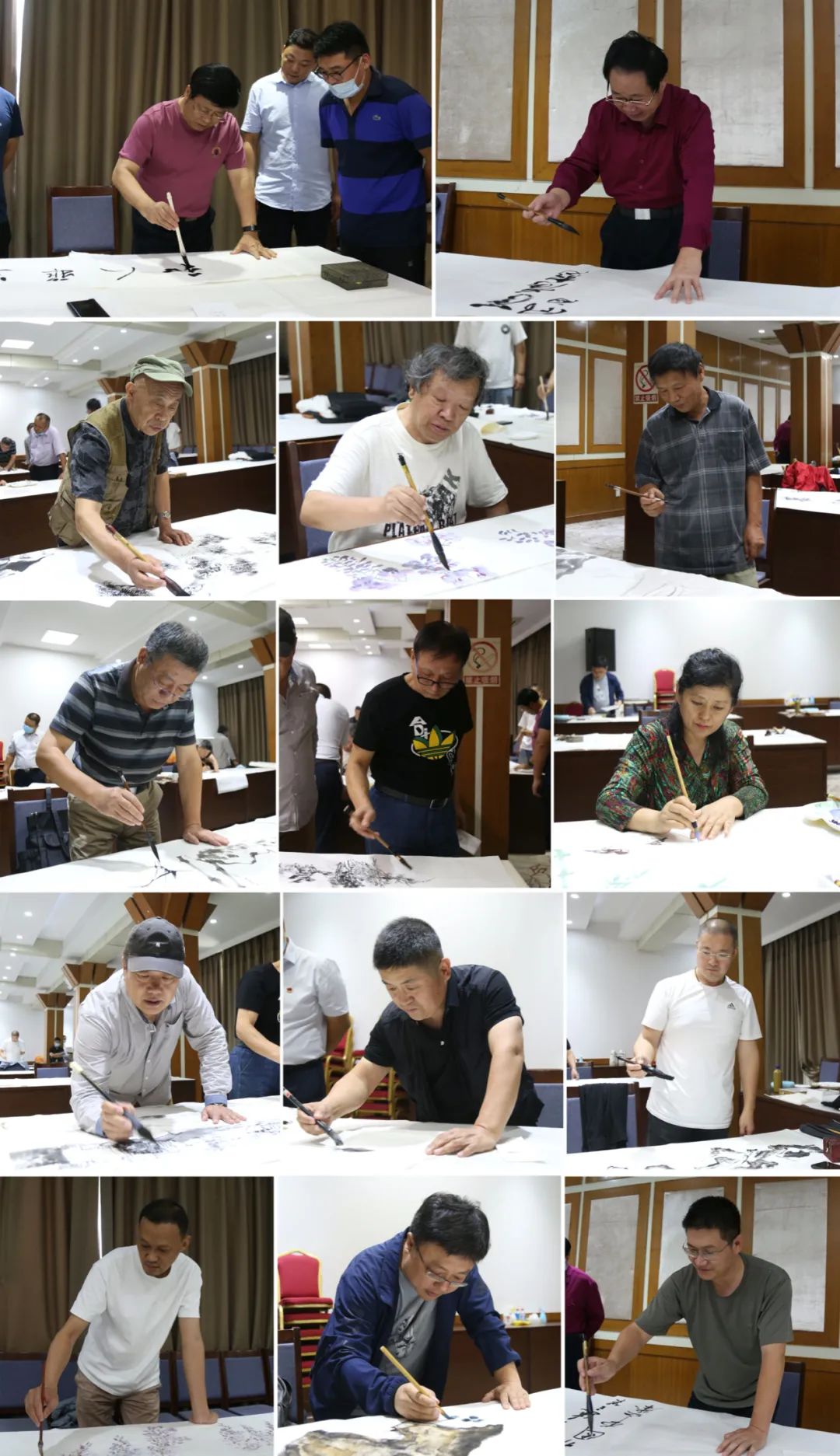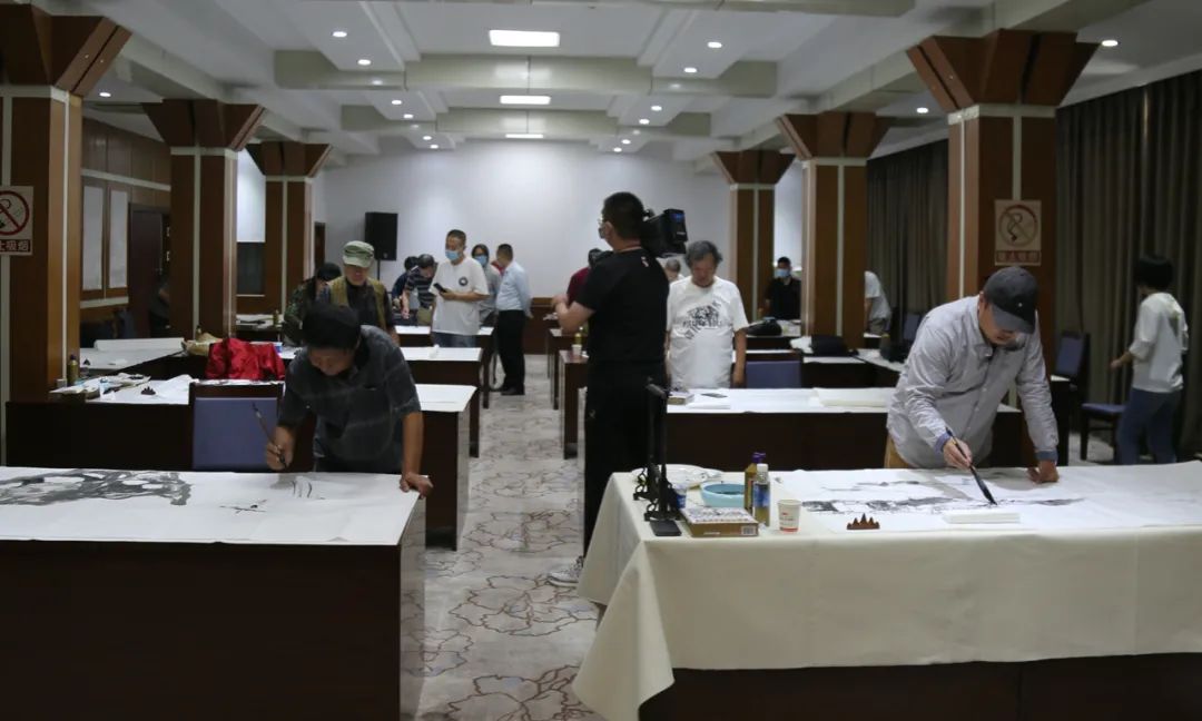 开幕式结束后,山东画院画家同喀什当地书画爱好者在援疆指挥部开展了交流与笔会活动,文化润疆团一行书画家挥毫泼墨,现场合作了《吉祥和平》、《喀什高台民居》、《藤花风里醉乡愁》三幅大画,同时又创作了书画作品50余件,充分体现了山东省对喀什文艺工作的高度重视和对喀什各族人民的深情厚谊,为繁荣文化艺术贡献了一份力量。