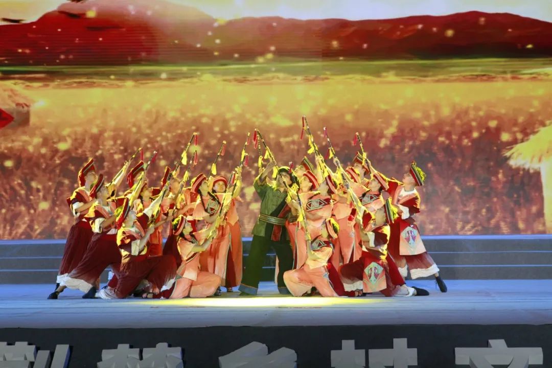 群舞《连厢情》 湖北阿尼阿兹文旅演艺有限公司 伴随着夜幕的降临,展演在独具地域特色的群舞《连厢情》中拉开了帷幕,民间老艺人用精彩的表演,表达了对滚龙连厢的深情厚爱。歌曲《摘朵栀子花》《紫薇树下》、小戏《燕儿归》用不同的艺术形式,反映大山里青年男女对美好爱情和幸福生活的追求。歌曲《麦浪》《耕牛闹春》声情并茂,独具风采,唱出了荆楚儿女质朴的情感和对美好生活的热爱。群舞《下鱼籇》《我的父母之乡》展现出乡村振兴背景下农村的新面貌、新生活、新气象。群舞《耍出土家新风采》《把把子鼓儿敲起来》将传统非遗融入现代生活,展示了民间艺术的无穷魅力。群舞《闯滩的汉子》讴歌了三峡人激流勇进、奋勇顽强、战天斗地的大无畏精神。而湖北小曲作品《鹤归谣》则以独具有地方特色的艺术形式,采用拟人的手法,展现武汉人民庚子年不畏艰难、万众一心抗击新冠疫情的光辉历程,感染了在场的每一位观众。