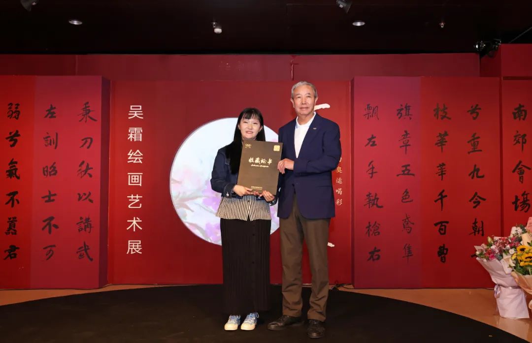国际奥委会副主席于再清向“为奥运喝彩”青年画家吴霜颁发收藏证书