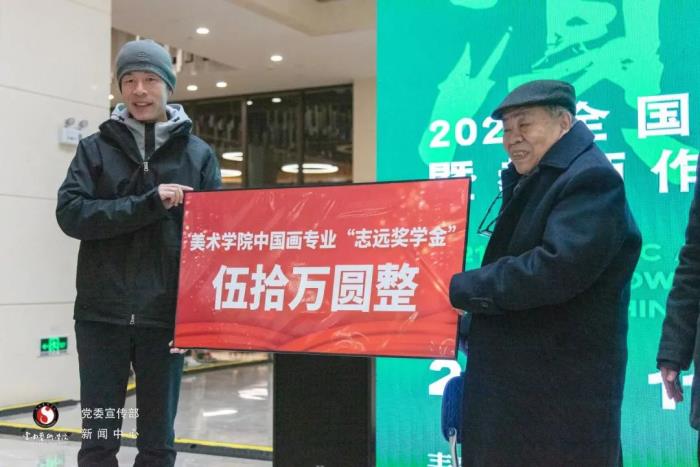 值得一提的是,云南艺术学院美术学院中国画系十一位教师将创作的十一幅作品义卖所得五十万元全部无偿捐献给美术学院并成立“志远奖学金”,老一辈艺术家和老师们用他们的言传身教、艺术成就及艺术品格在潜移默化中感染着学生。他们的笔墨紧随时代,坚守艺术服务人民,以大爱之心育莘莘学子,以大美之艺绘传世之作,是学校全面加强师德师风建设的生动实践,是一堂生动的课程思政示范课,也是云南艺术学院美院教师对“立德树人”的深刻理解。