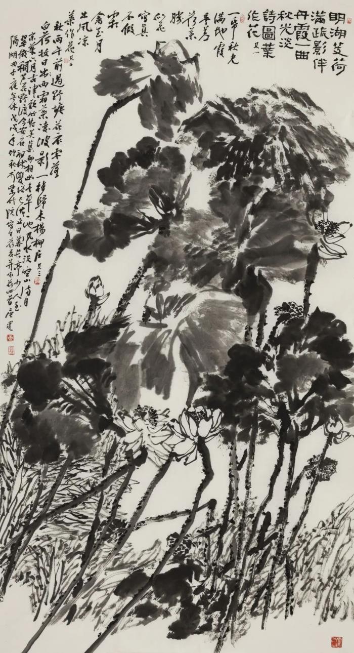 唐建 《明湖芰荷满 疏影伴丹霞》