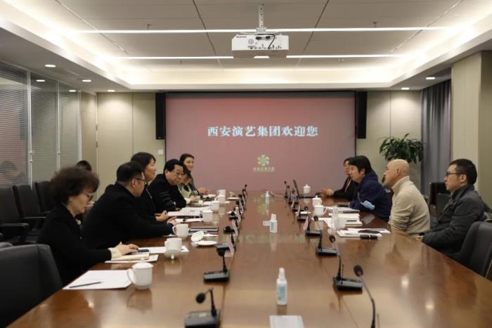 应西安演艺集团及西安战士战旗杂技团邀请,11月23日,上海文广演艺集团有限公司副总裁、上海市演艺有限公司总经理林振豪,上海市演艺有限公司副总经理褚保杰,上海市演艺有限公司项目运营部总监周黎静一行来到西安演艺集团进行考察交流,西安曲江新区党工委委员、西安演艺集团有限公司党委书记、董事长寇雅玲,常务副总经理雍涛,副总经理赵鹏,西安战士战旗杂技团团长张权、执行董事闻雅娜陪同考察。