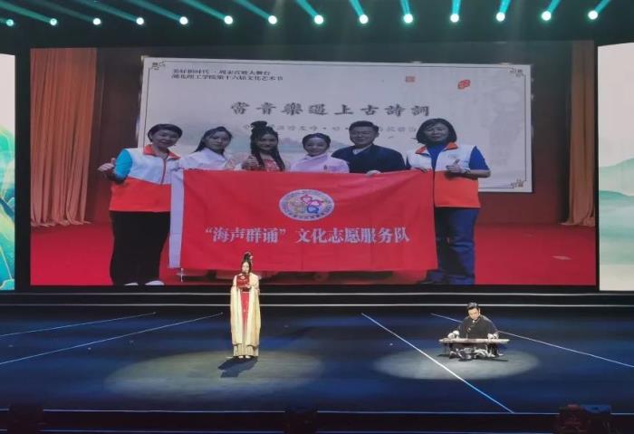 “海声群诵”志愿服务项目是由湖北省群艺馆组织主管的一个文化志愿服务项目。2017年,省群艺馆成立“海声群诵”志愿者服务队,致力于弘扬中华民族优秀传统文化。五年来,志愿服务队立足荆楚深厚的文化沃土,以传播吟诵文化为主轴,广泛开展“吟诵论坛”“吟诵讲堂”“吟诵舞台”等公益活动,活跃在省政协、省图书馆、中小学、高校、军营、各大企业以及各种公益活动的舞台上,足迹踏遍了湖北省的大部分地市,已成为我馆一张响亮的文化名片。据了解,目前,全省有900多万名注册志愿者,3.9万余支志愿服务队。