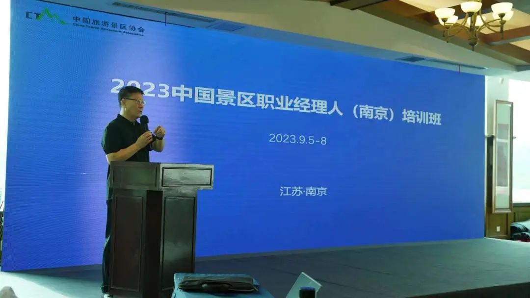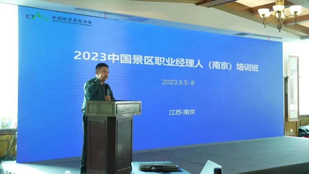 9月4日-8日,由中国旅游景区协会指导,北京智旅创景文化传媒有限公司承办,南京银杏湖旅游风景区支持的“中国景区职业经理人(南京)培训班”在南京银杏湖酒店成功举办。来自全国60多家景区100余位学员参加了培训。中国旅游景区协会秘书长霍建军、南京银杏湖集团首席营销官谭爱凤出席开班仪式并致词。南京市江宁区文化和旅游局副局长晁如足、南京市江宁区台办副主任宋德华等领导出席。 中国旅游景区协会秘书长霍建军在开班致辞中表示,中国旅游景区协会本着“服务国家、服务社会、服务政府、服务行业、服务会员”的宗旨,培养适应旅游景区快速发展的管理人才,把握景区行业趋势、职业经理人素养提升、实践发展经验交流等多个方面帮助大家开拓视野,提升水平。希望各位学员通过培训拓展知识,推进旅游景区管理、运营、服务水平和品质的全面提升,共同推动景区高质量发展行稳致远,再创辉煌。 谭爱凤在致辞中表示,对中国旅游景区协会领导、江宁区文化和旅游局领导、南京市江宁区台办领导、前来授课的专家教授以及参训学员表示欢迎,并介绍了银杏湖旅游风景区的相关情况。银杏湖旅游风景区占地面积十五平方公里,分五大区域,是江苏省规模最大的主题游乐项目:银杏湖主题乐园、银杏湖水世界、银杏湖生态区、银杏湖国际高尔夫俱乐部球场及银杏湖度假酒店,可接待各年龄段游客。这次全国景区职业经理人(南京)培训班在银杏湖景区举办,充分体现了中国旅游景区协会对银杏湖旅游风景区的信任与厚爱。银杏湖将发挥自身优势,践行责任担当,将培训班办出特色、办出水平、办出成效,为全国景区行业高质量发展提供人才支撑。