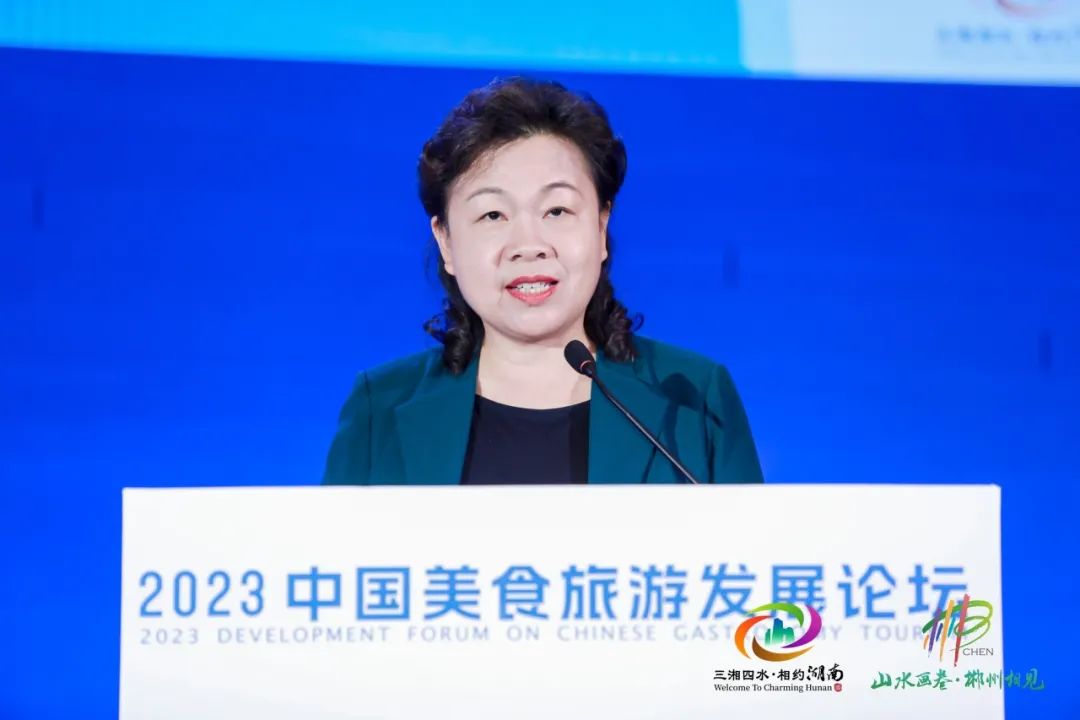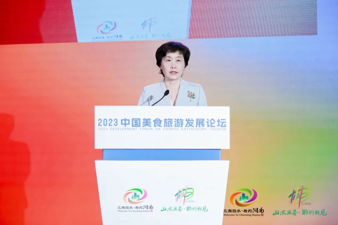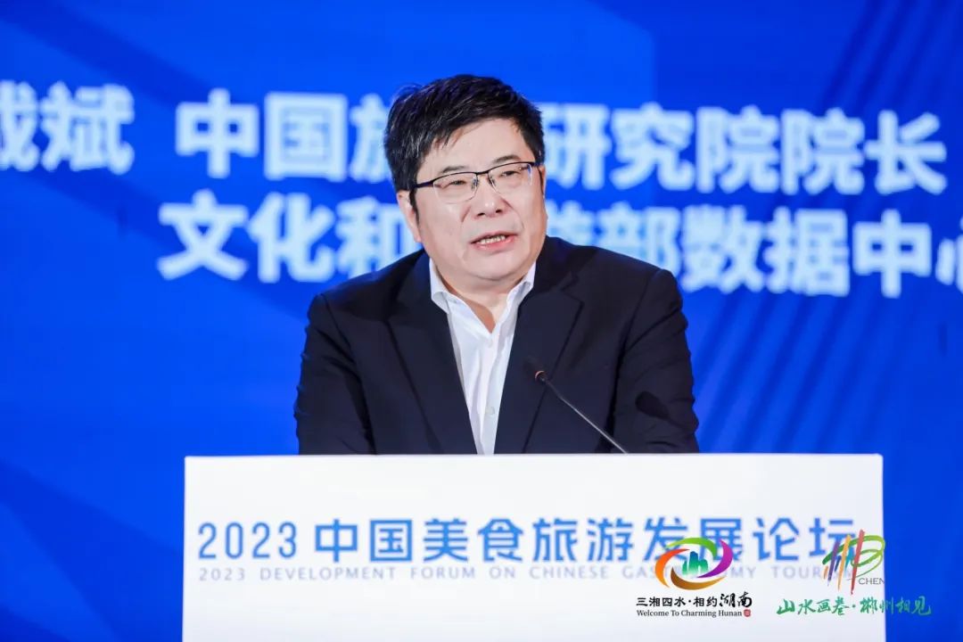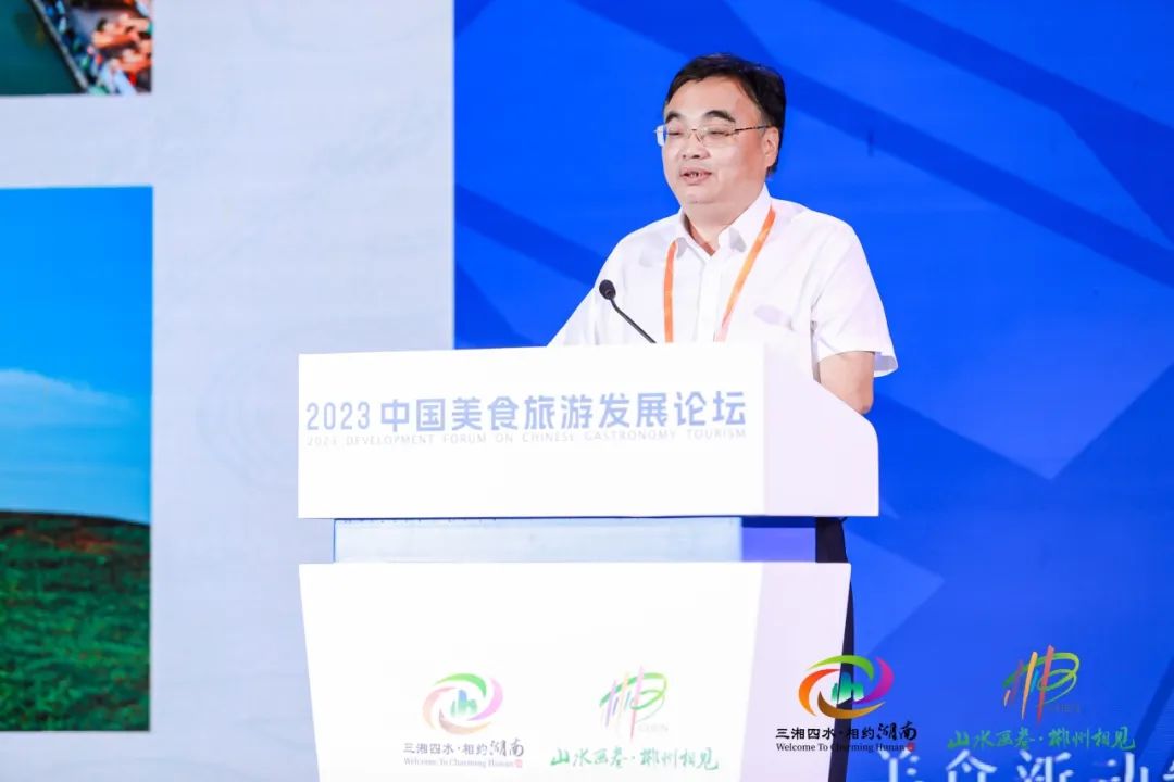 论坛上,中国旅游研究院院长戴斌发布《美食新动能•旅游新生活——中国美食旅游发展报告(2023)》,中国旅游研究院李惠博士发布《湖南美食旅游发展报告》。