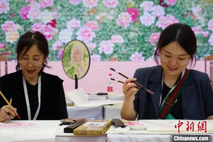 当天,记者在菏泽市巨野县的牡丹工笔画展位看到,一名画工正在宣纸上给牡丹花瓣上色。“牡丹工笔画是我们当地的特色,现在已经形成集绘画、刻章、装裱、培训等为一体的产业链。”菏泽市巨野县书画院院长程军伟表示,牡丹工笔画笔法精湛、色彩绚丽,学起来上手很快。目前,该产业已带动1万余人实现家门口就业。“希望通过这次博览会提升牡丹工笔画的知名度,宣传牡丹文化。”