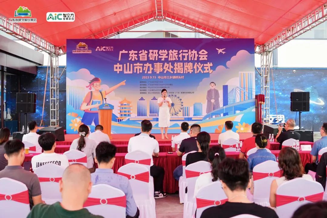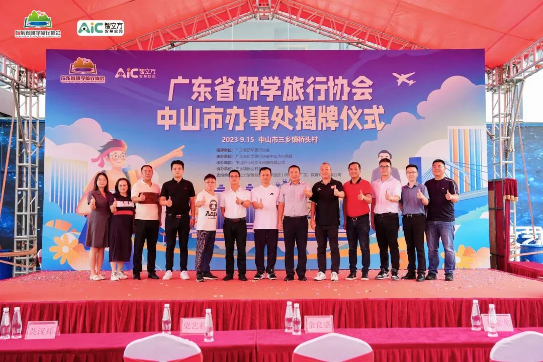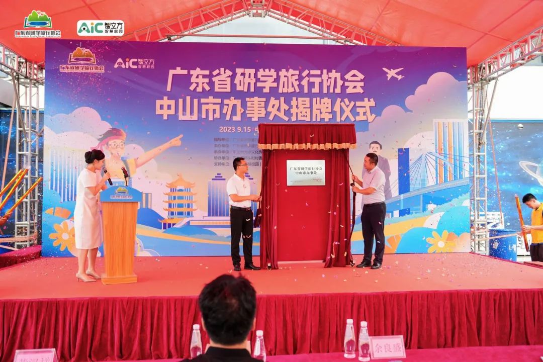 ▲点击查看揭牌仪式现场视频 为进一步推动中山市研学旅行事业的发展,提高中山市学生的综合素质和实践能力。9月15日,广东省研学旅行协会中山市办事处揭牌仪式,在中山市三乡镇桥头村隆重举行,标志着中山市研学旅行事业迈上了一个新的台阶,开启新征程。 广东省研学旅行协会副秘书长黄汉祥、广东省研学旅行协会副会长徐溢佳、三乡镇副镇长余良盛、三乡镇宣传文化服务中心副主任梁艺君、三乡镇桥头村党支部书记郑家龙、中山篮球协会会长林建江、古镇镇文化和旅游协会执行会长卢育荣、石岐区女企协会副会长林翠嫦、智立方智慧校园总经理刘子畅、中山市旅游推广大使陈仲霖、研学家(广东)教育科技有限公总经理李勇、汤臣倍健透明工厂景区研学项目负责人林苑浓莅临参加。研学旅行产业相关机构代表和媒体代表齐聚桥头村,共同见证这一历史性的时刻。